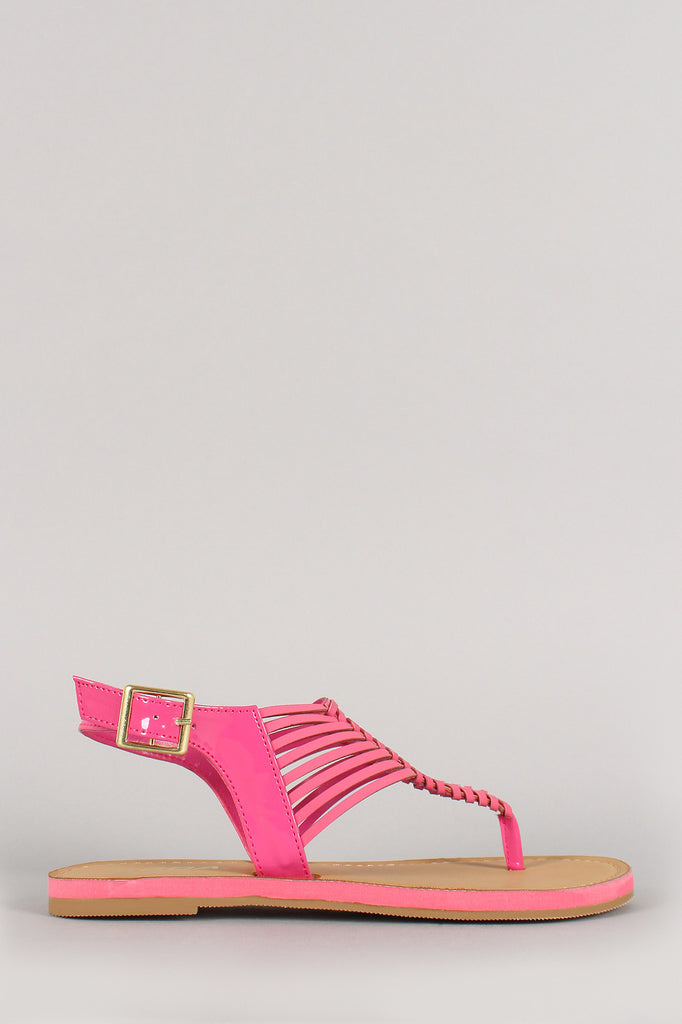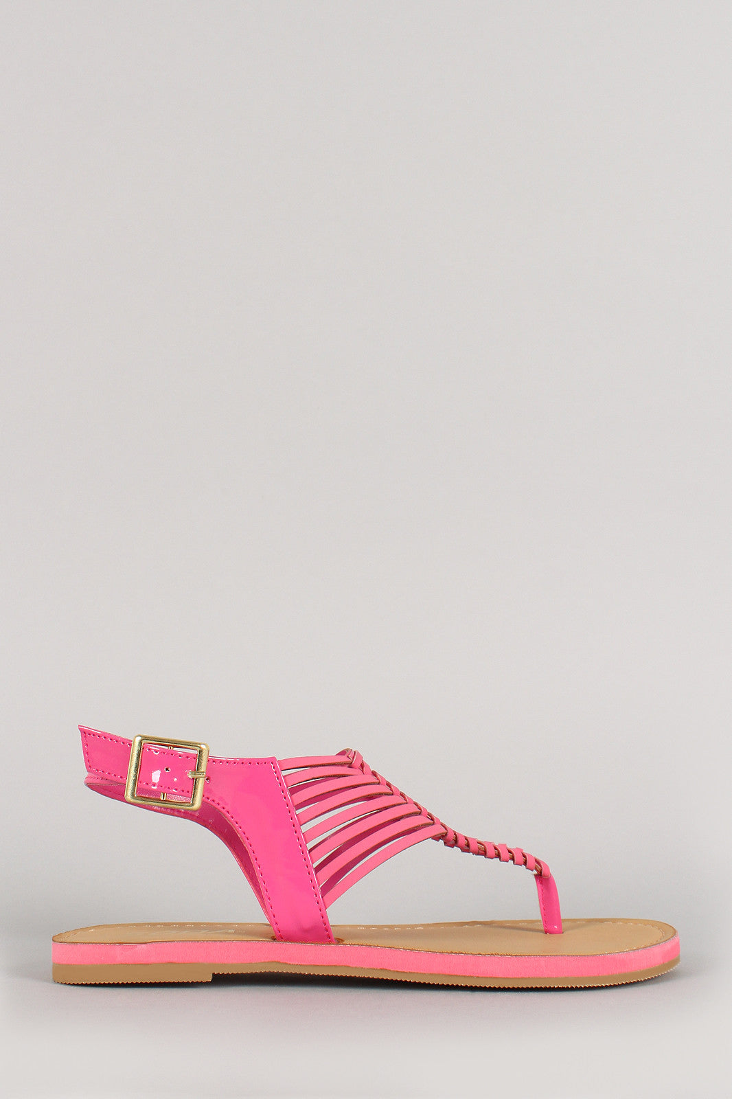 Soda Patent Two Tone T-Strap Slingback Flat Sandal