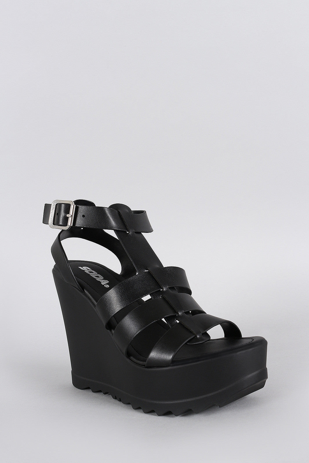 Soda Strappy Open Toe T-Strap Lug Sole Platform Wedge