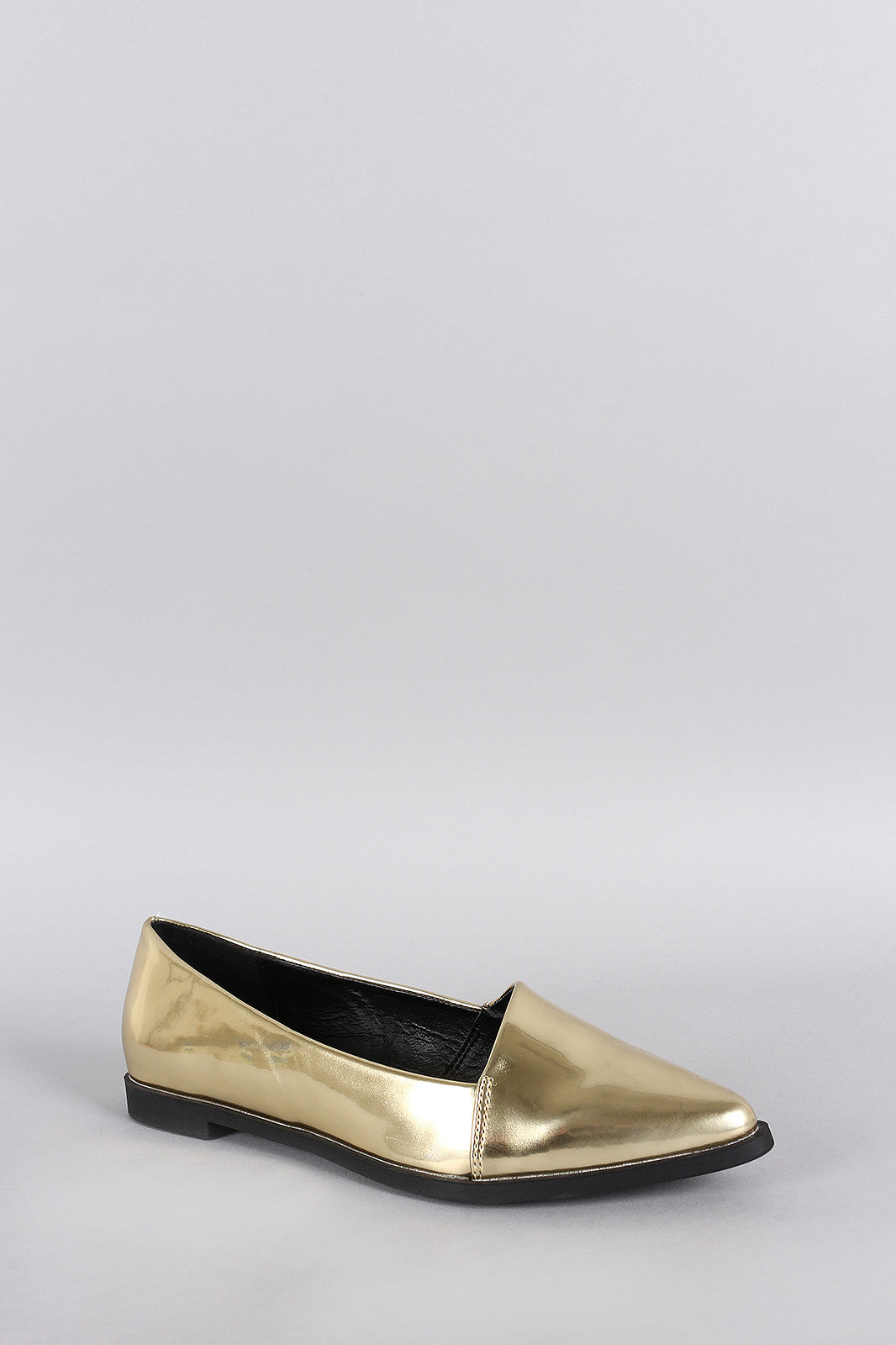 Metallic Asymmetrical Pointy Toe Loafer Flat