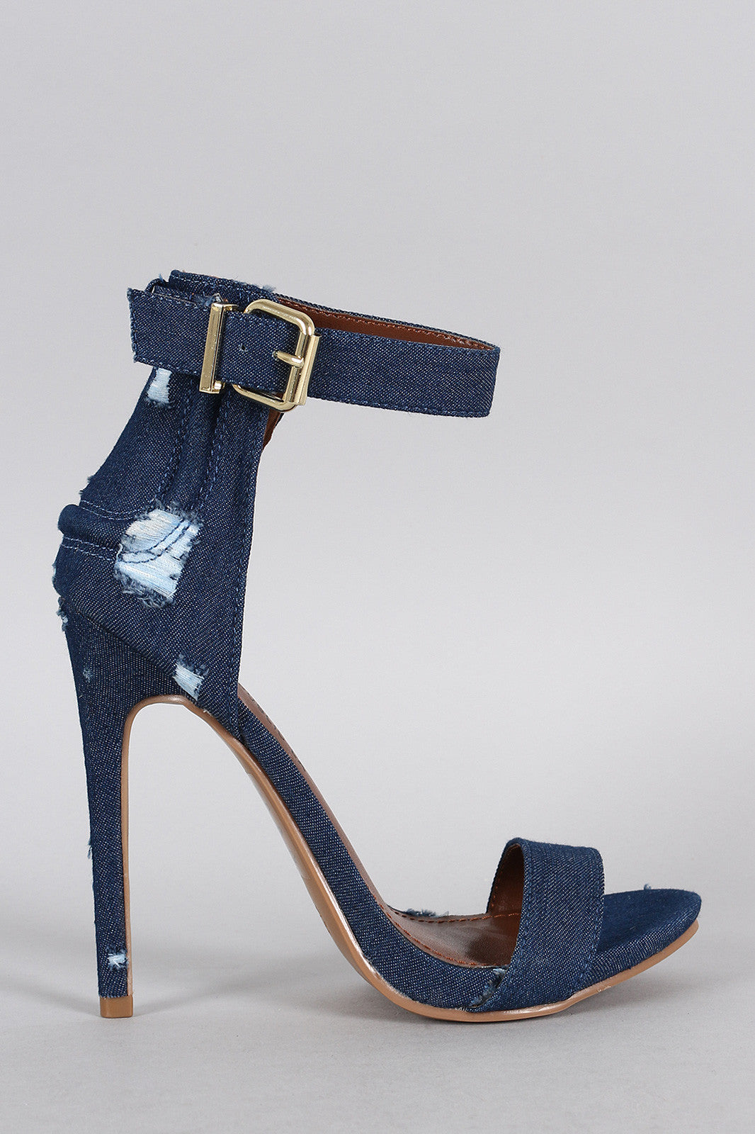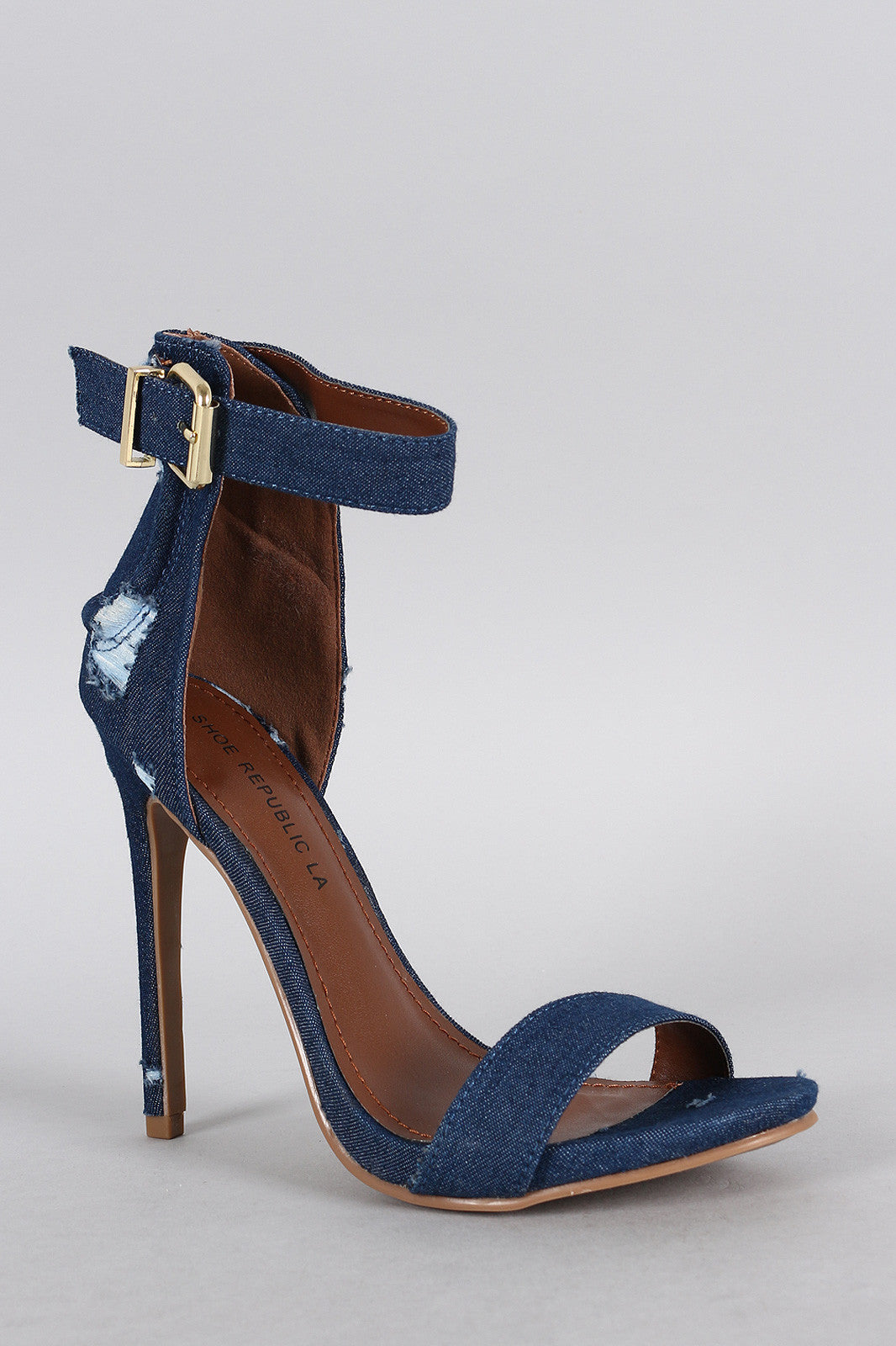 Shoe Republic LA Distress Denim Ankle Strap Heel