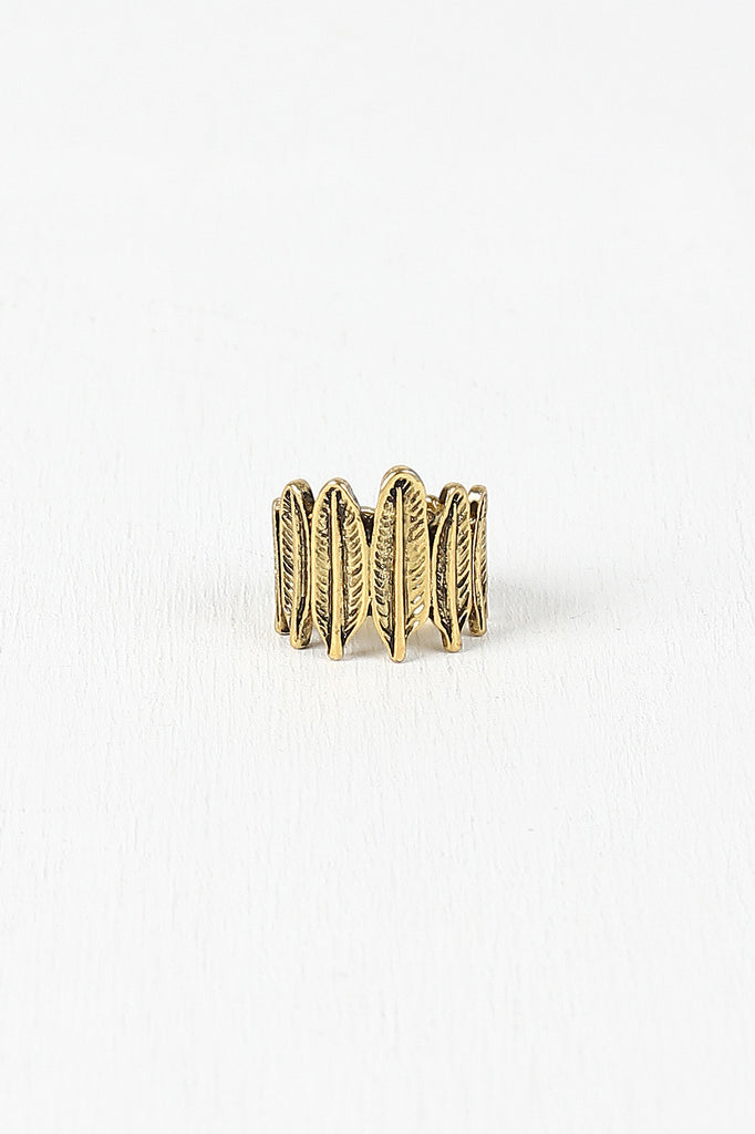 feathers of increasing size, glossy enamel, and non-adjustable band.