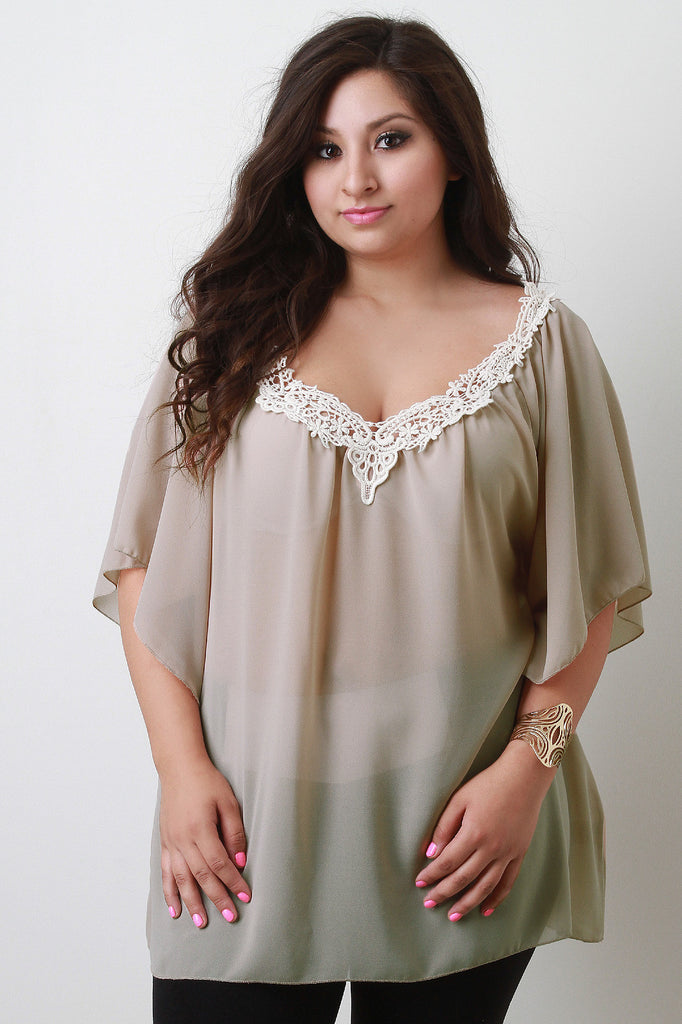 Plus Size Flowy Chiffon Crochet V-Neck Top