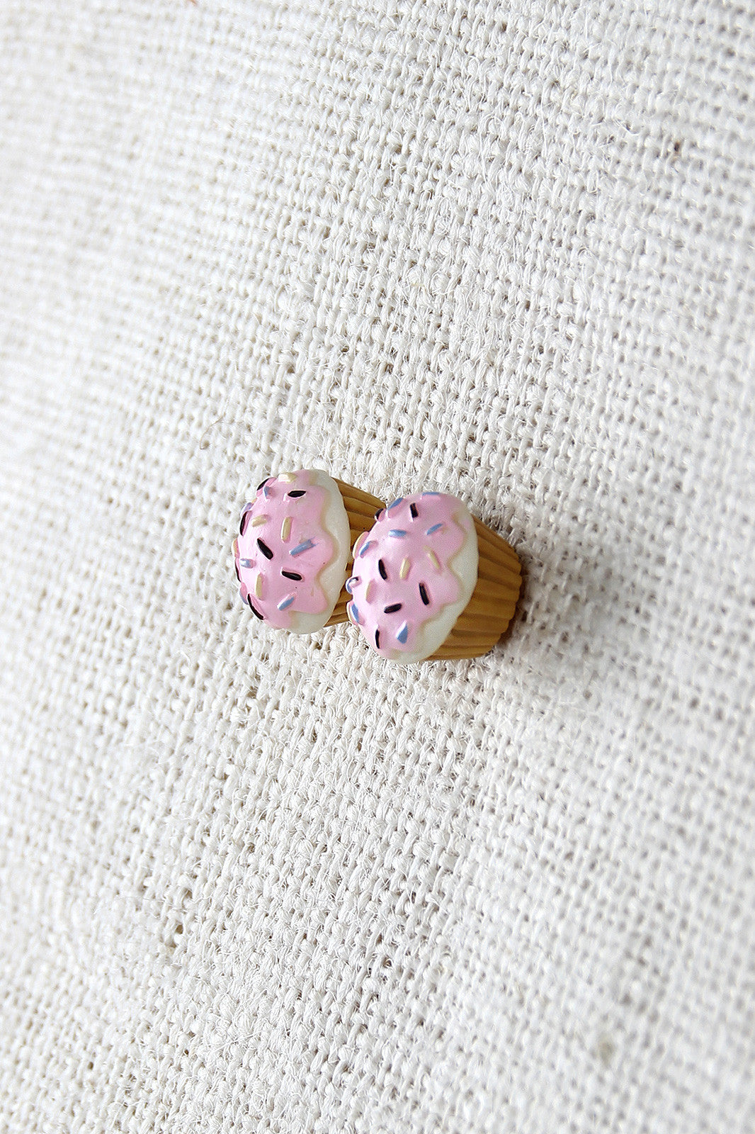 Adorable earrings featuring a 3-D sprinkles cupcake design and post backs.