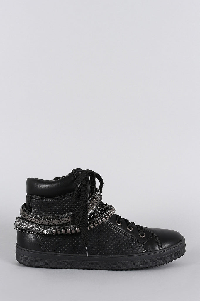 Liliana Perforated Multiple Chains High Top Lace Up Sneaker