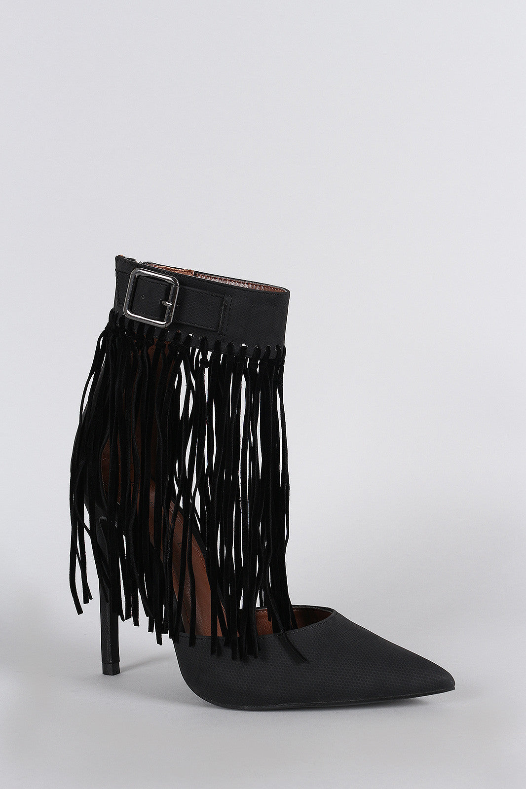 Shoe Republic LA Knotted Fringe Cuff Pointy Toe Pump