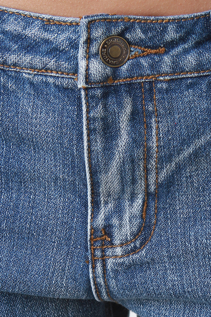 These boyfriend jeans features a relax taper cut fit, distress holes at front, low rise construction, belt loops, classic 5-pocket design, zipper fly and a single button closure. Accessories sold separately. Made in U.S.A. 100% Cotton.