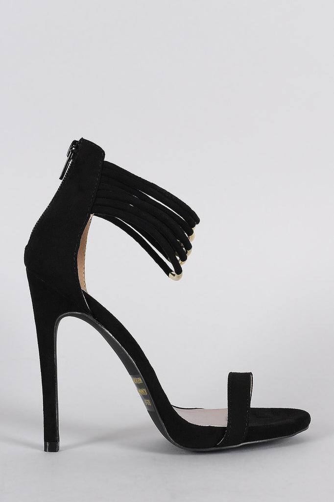 Qupid Suede Strappy Ankle Cuff Open Toe Stiletto Heel