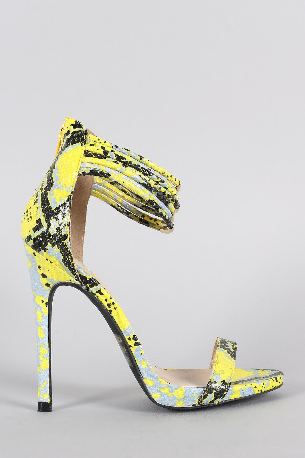 Qupid Snake Strappy Ankle Cuff Open Toe Stiletto Heel