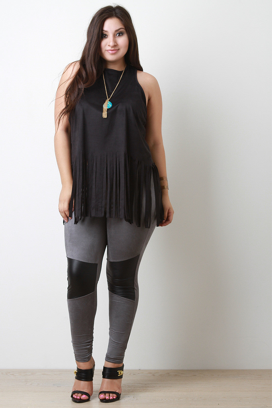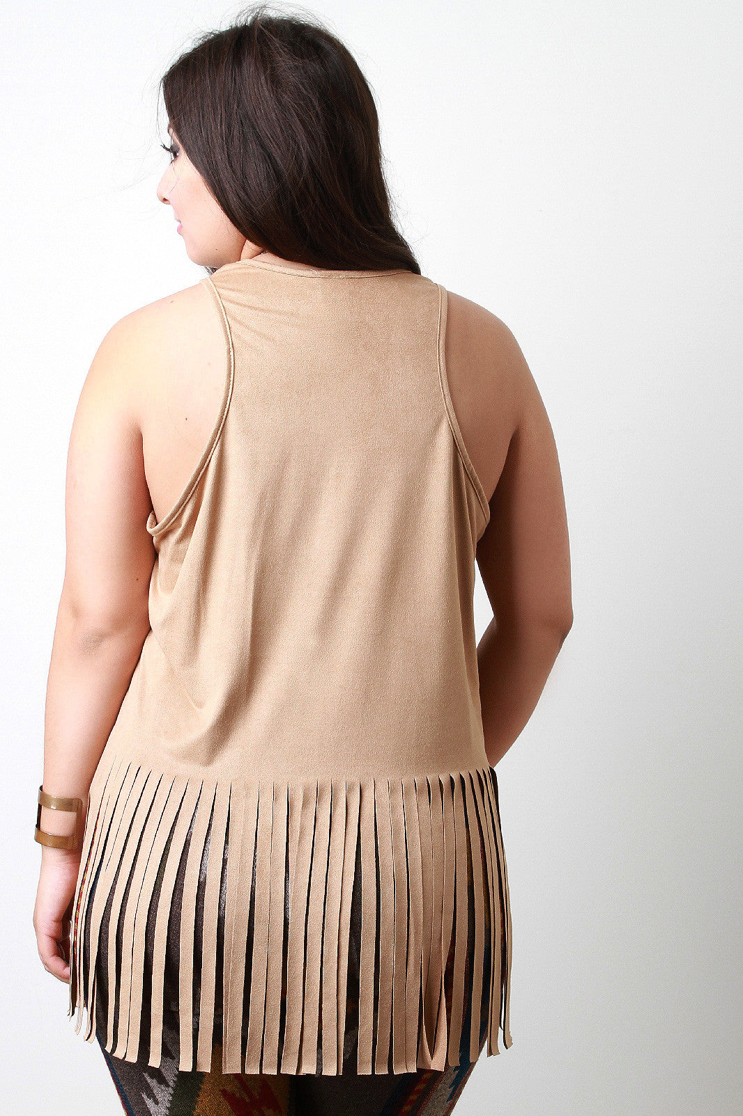 Sleeveless Suede Fringe Hem Top