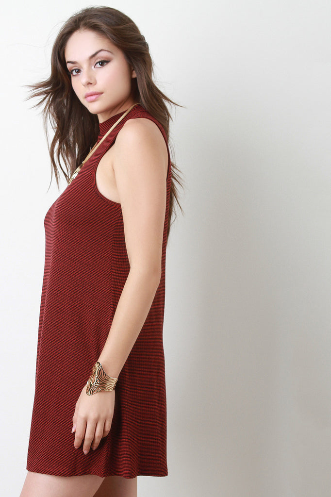 A sleeveless shift fit . Accessories sold separately. Made in U.S.A. 95% Rayon, 5% Lycra.