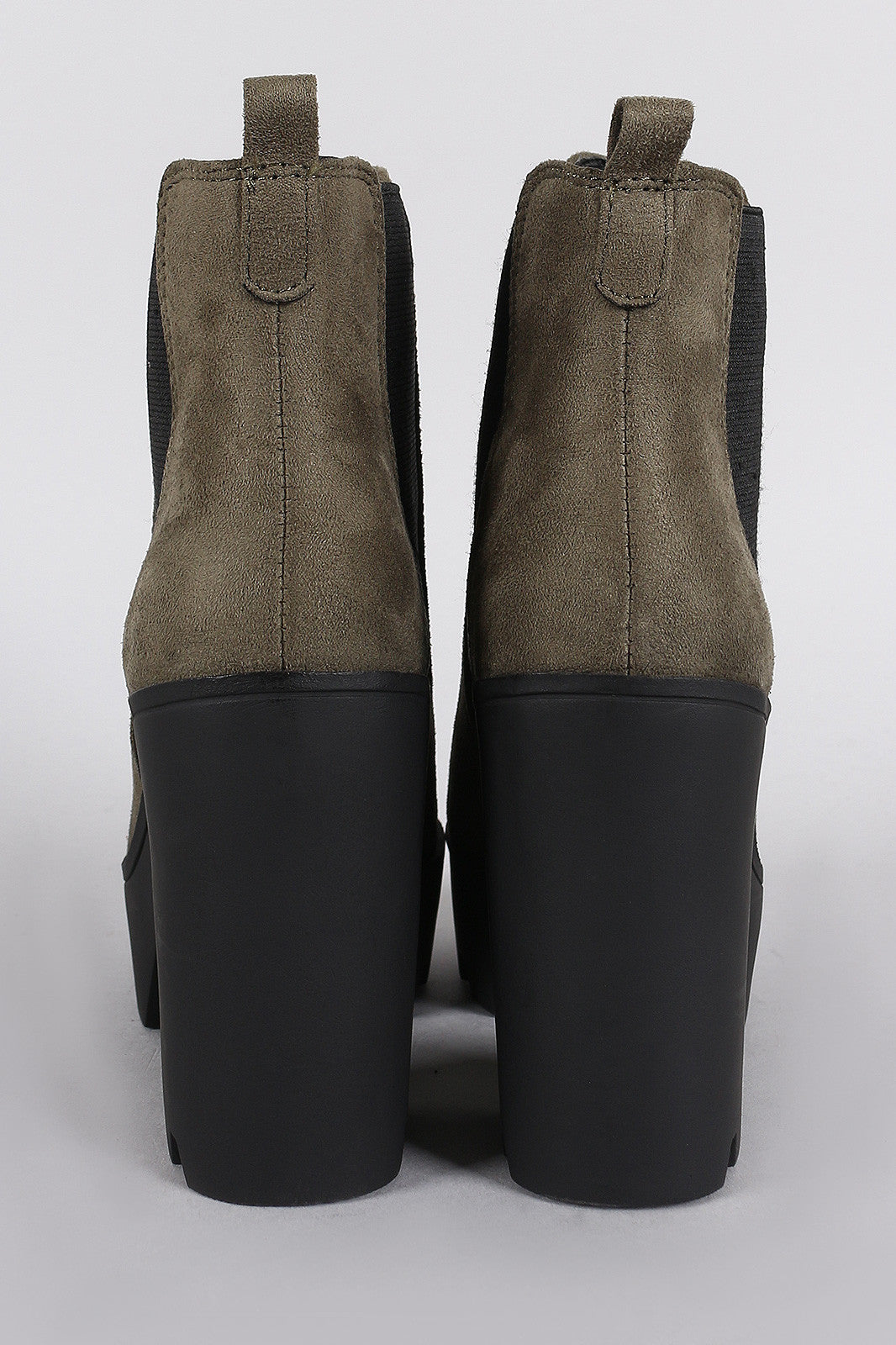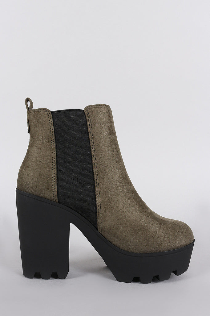 These platform and chunky heel. Designed as an easy pull-on style; featuring side elastic gores for a comfort fit.