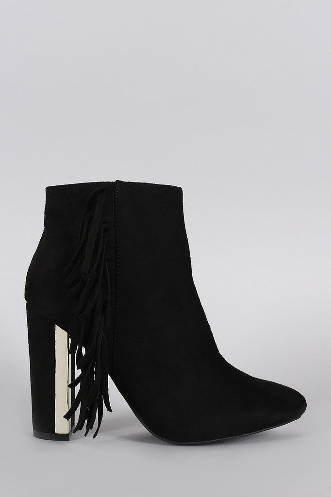 Qupid Suede Fringe Metallic Trim Heeled Booties