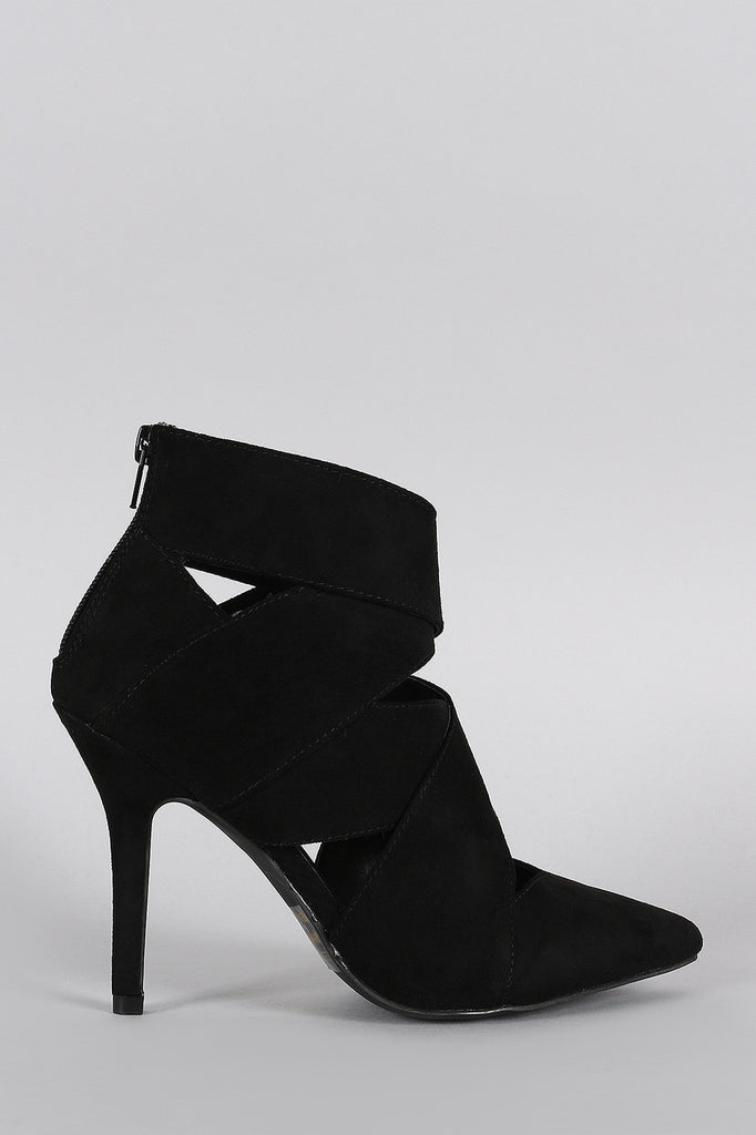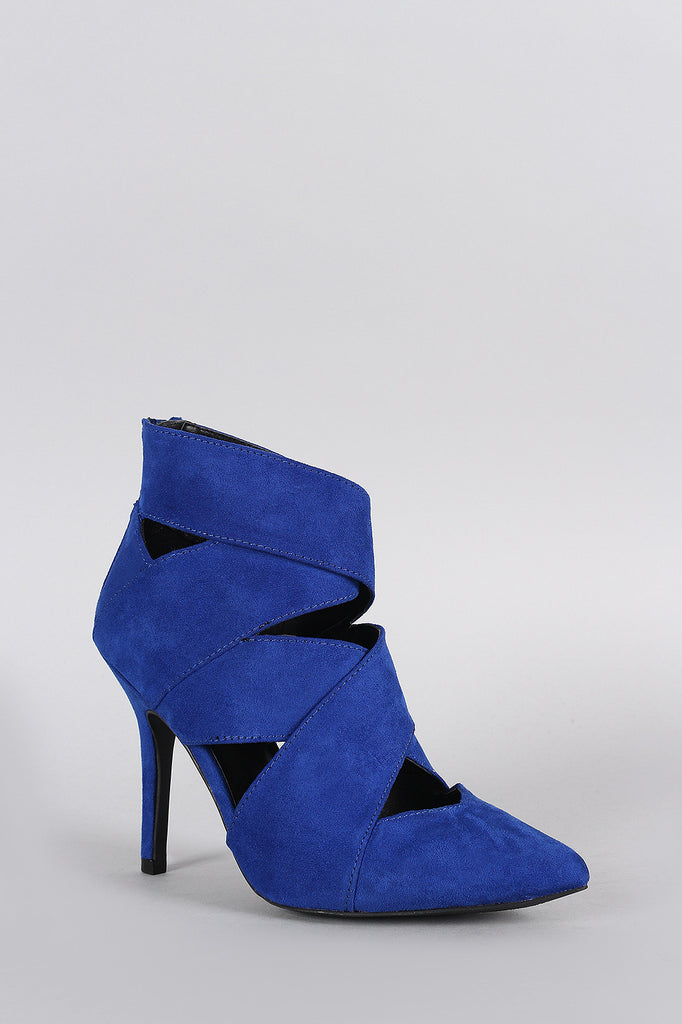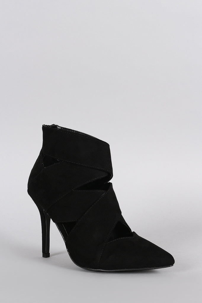 Qupid Suede Strappy Pointy Toe Stiletto Booties