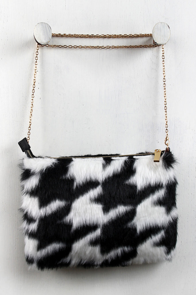 Houndstooth Faux Fur Clutch