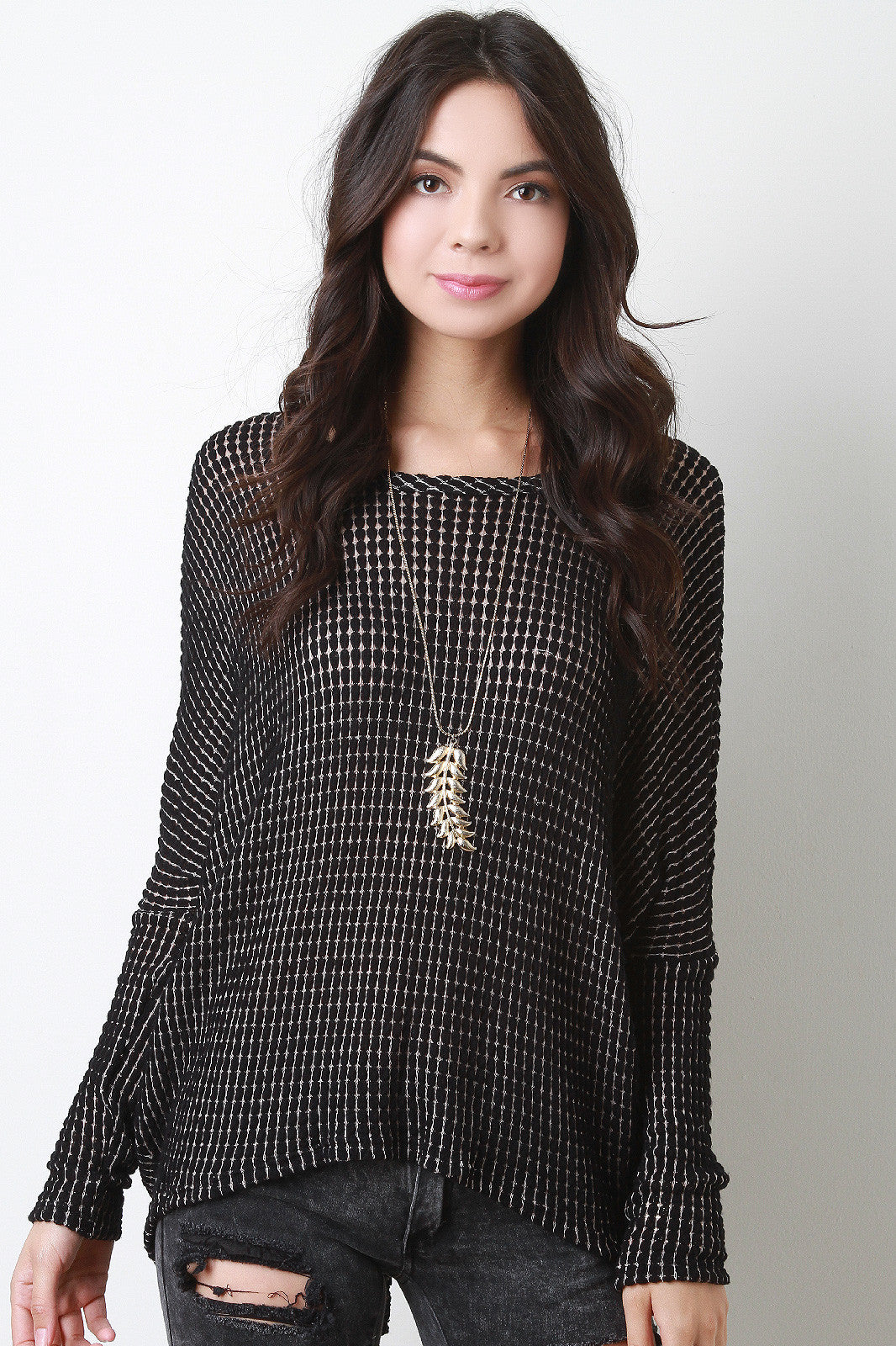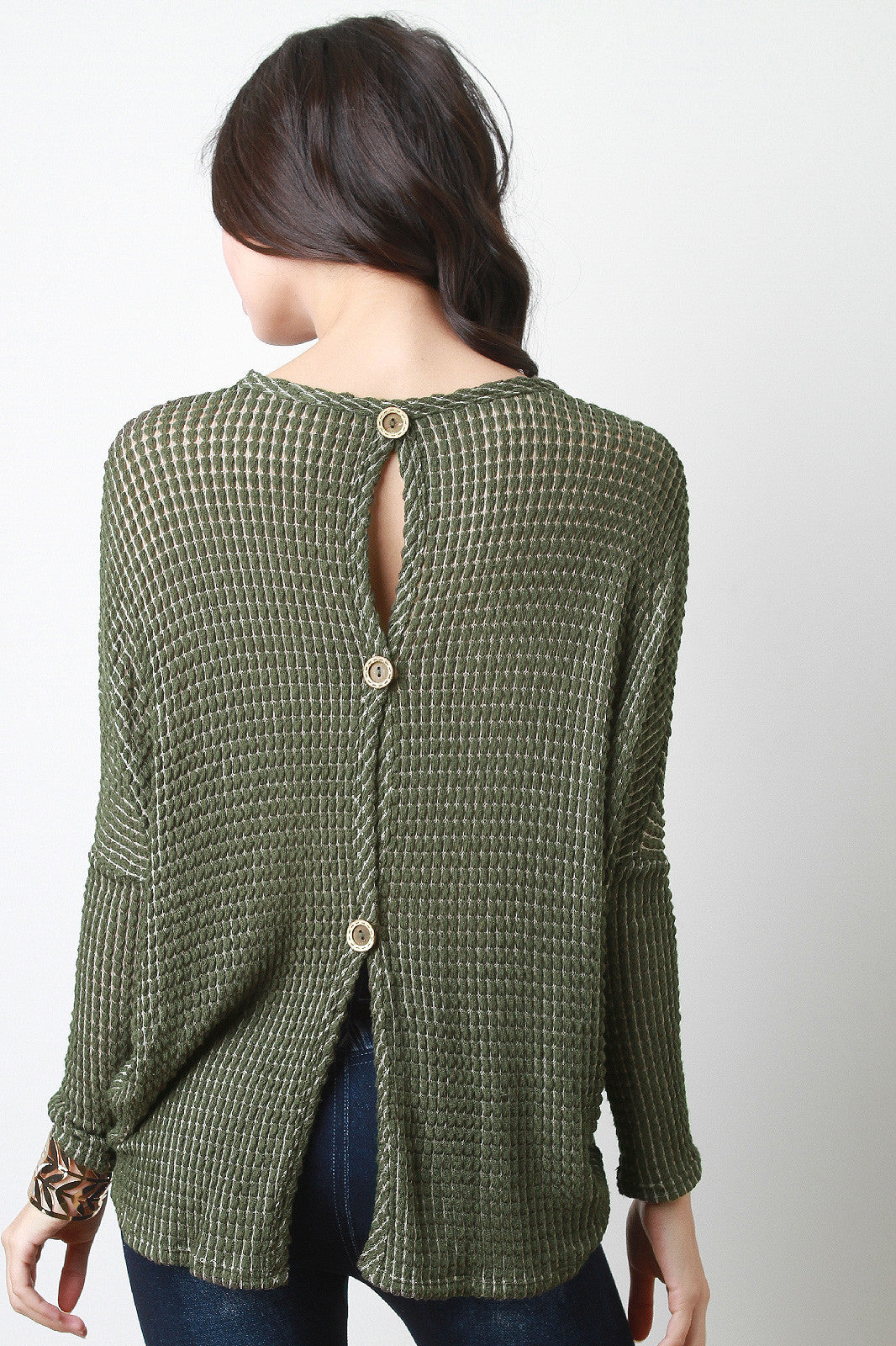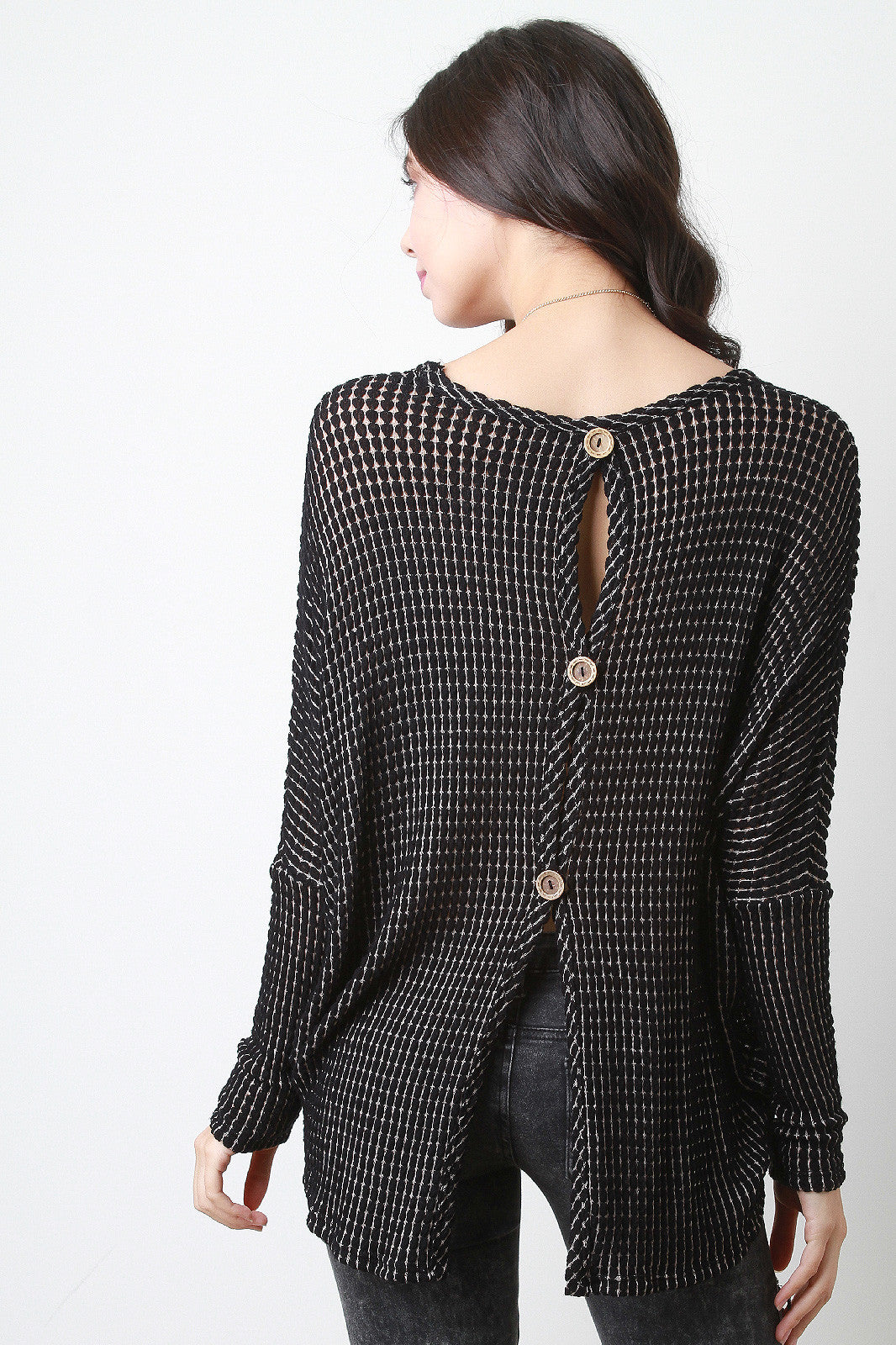 Loose Knit Button-Up Back Top