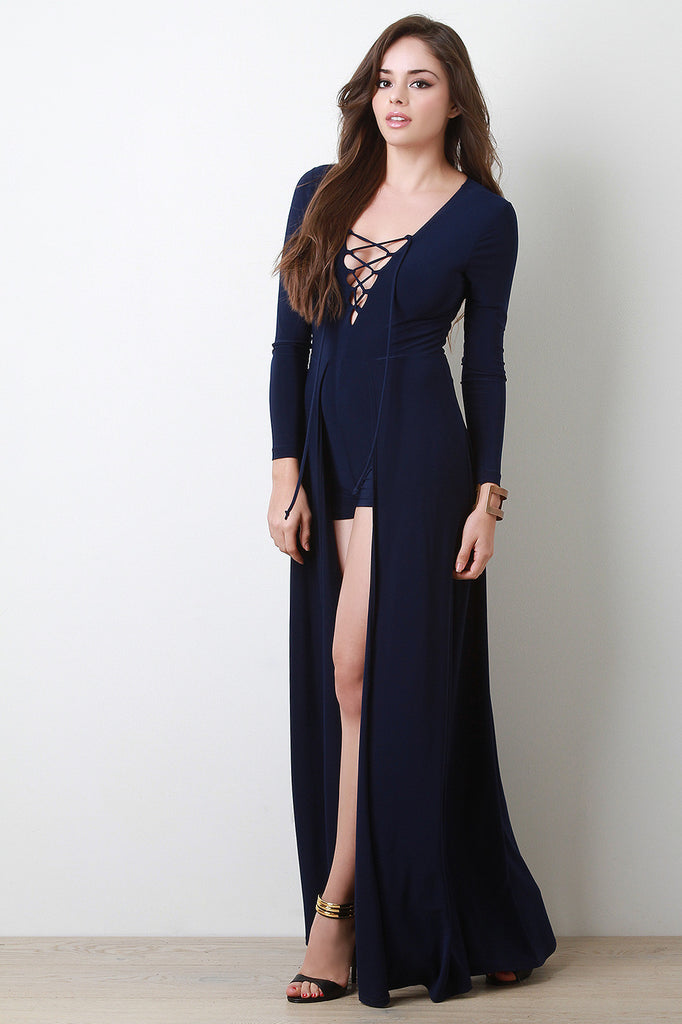 Lace Up Long Sleeve Maxi Romper