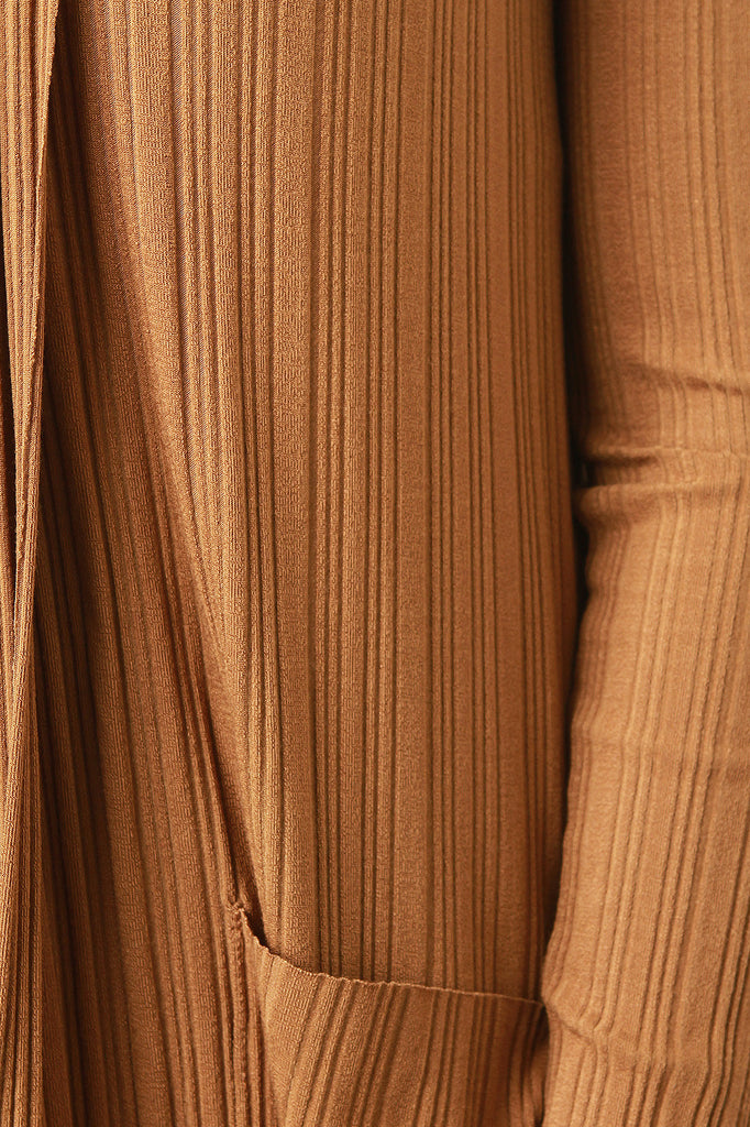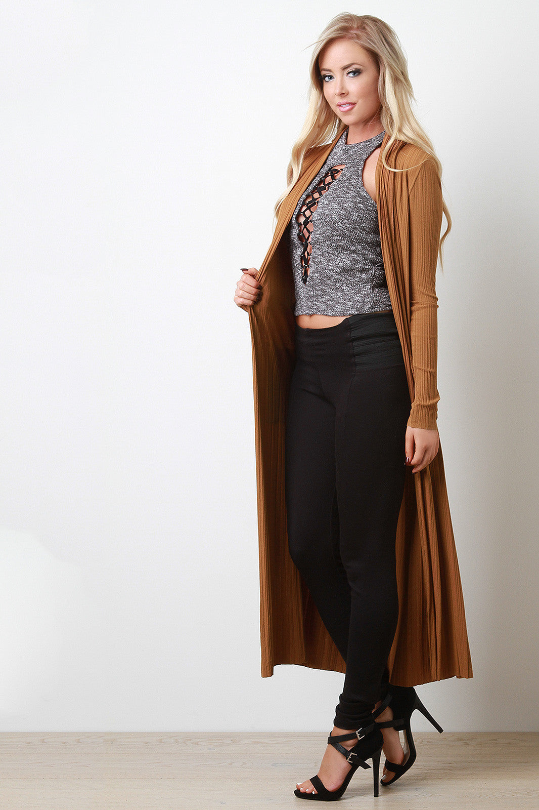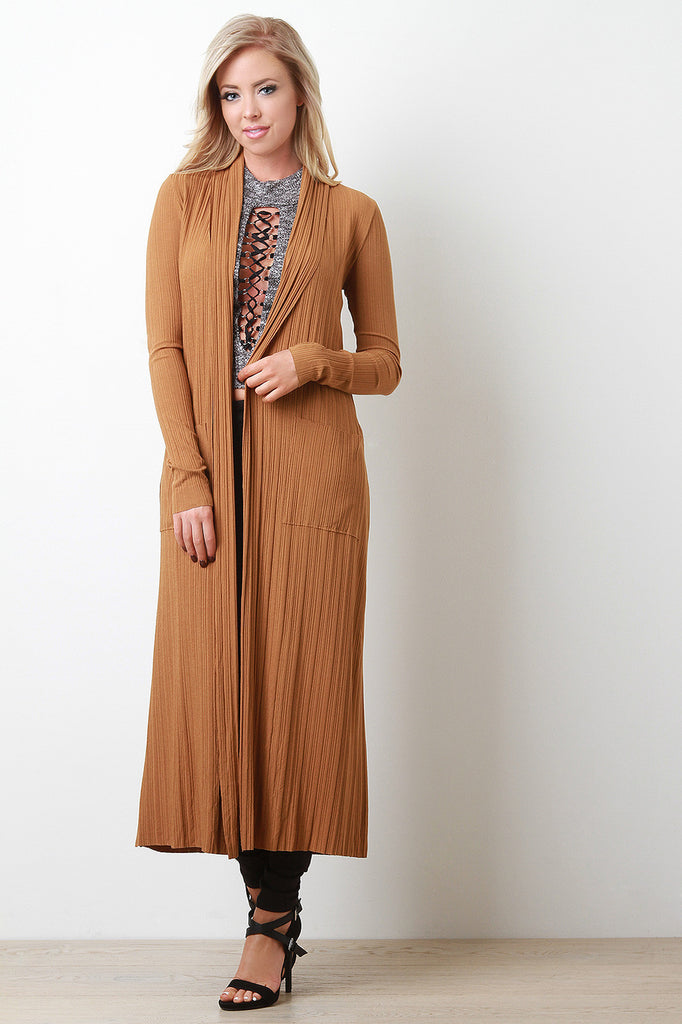 Ribbed Knit Floor Swept Cardigan