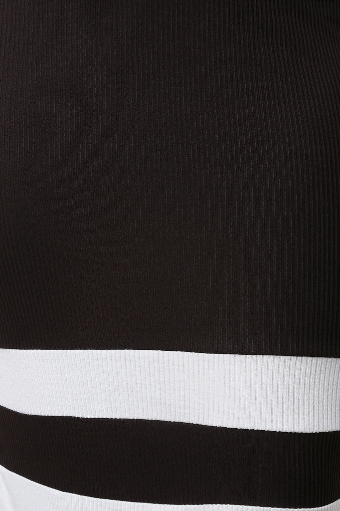 This plus size pencil skirt features a ribbed jersey knit, an elasticized waistband, and wide athletic stripes at the hem. Accessories sold separately. Made in U.S.A. 97% Rayon, 3% Spandex.