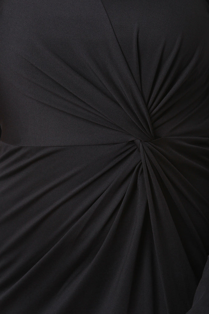 Goddess Off-Center Knotted Long Sleeve Maxi Dress