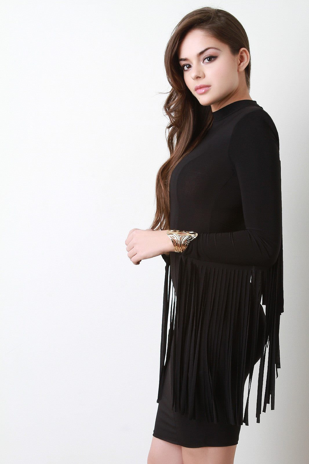 Fringe Sleeve Structure Bodycon Dress