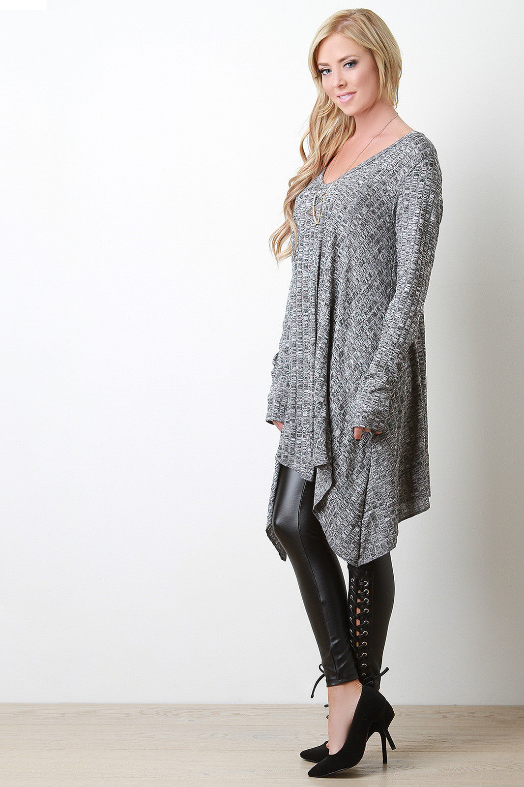 Rib Knit Long Sleeve Sharkbite Top