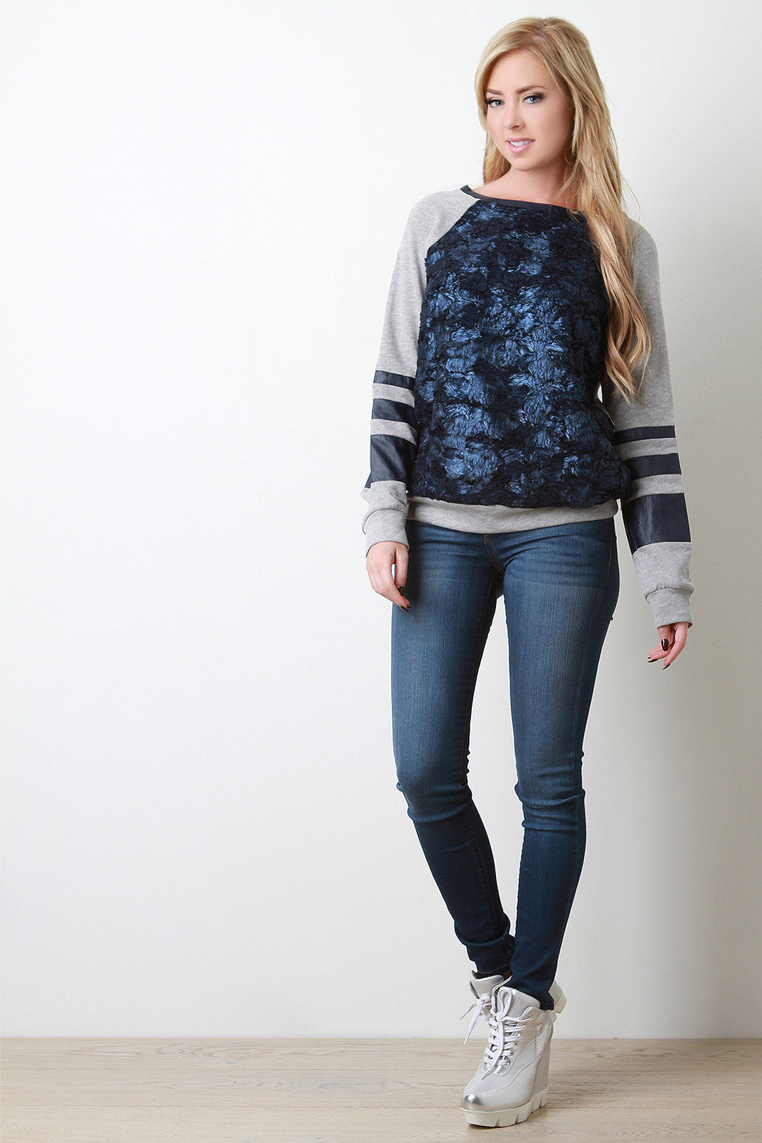 A vegan leather panels, and a short back zipper closure. Accessories sold separately. Shell: 100% Cotton. Shell 2: 100% Polyester. Shell 3: 55% Cotton, 45% PU. Lining: 100% Rayon.