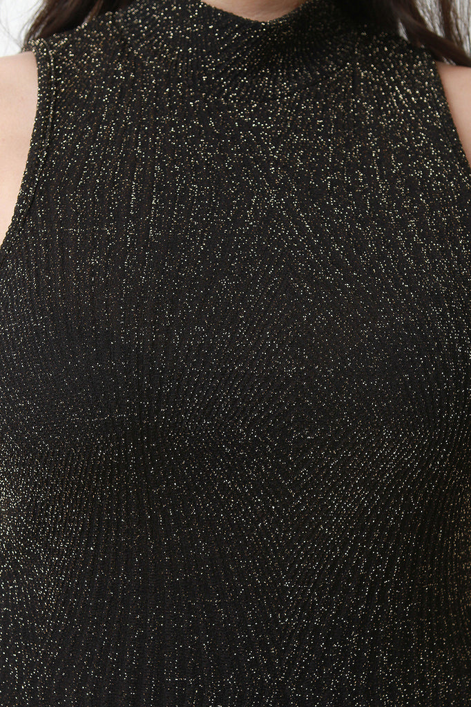 Metallic Threaded Texture Sleeveless Mock Neck Dress