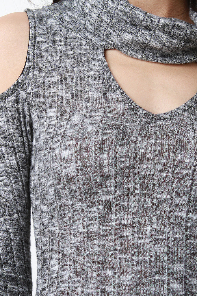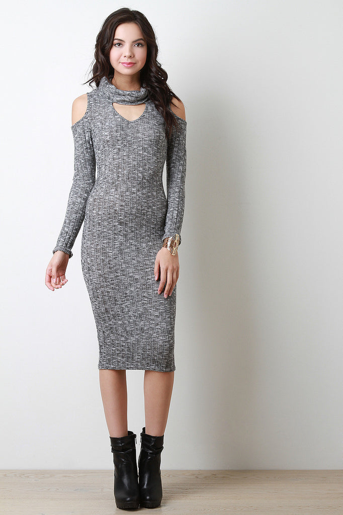Marled Knit Cold Shoulder Cutout Midi Dress