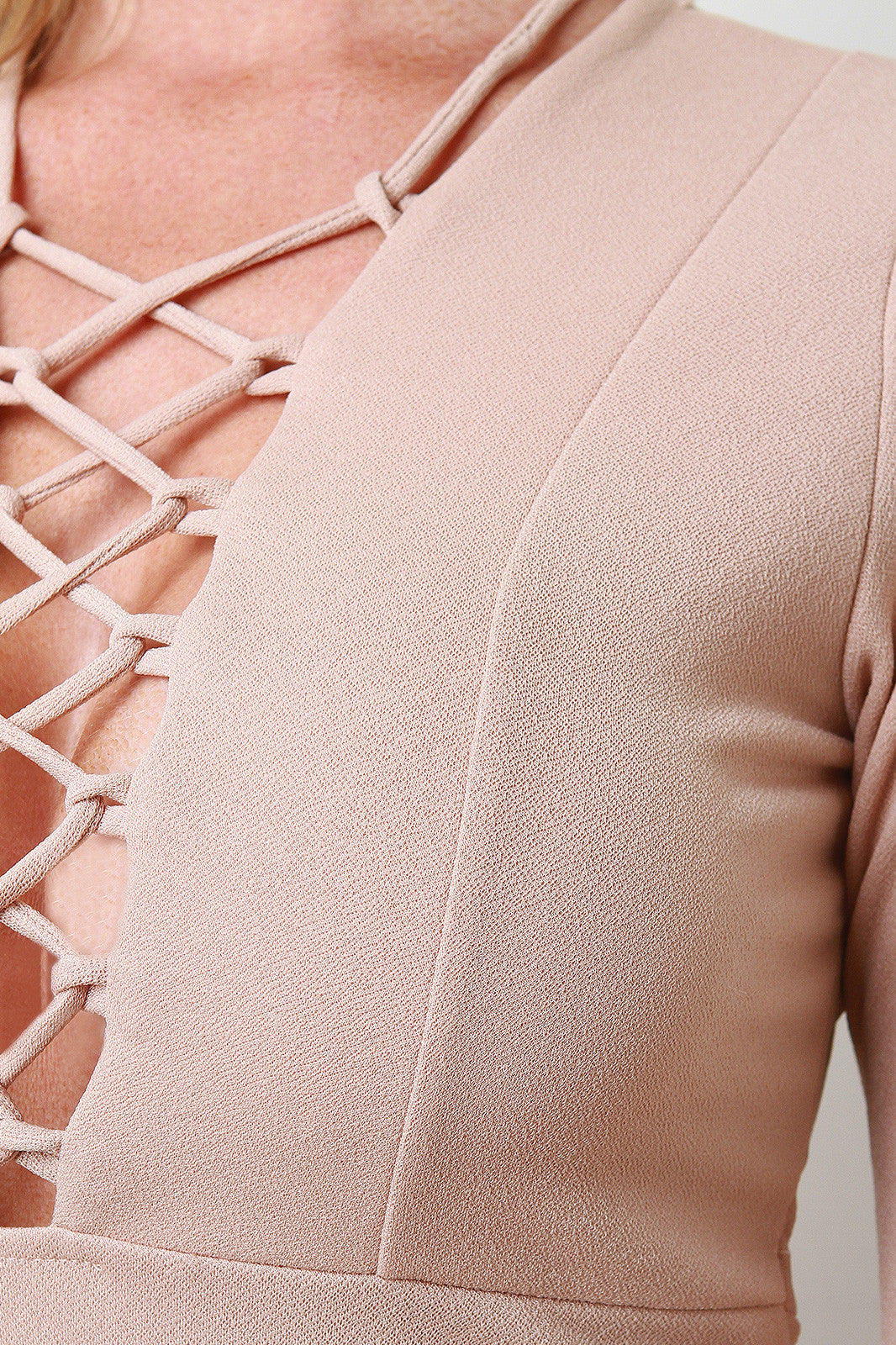 Front Lace Up Bell Sleeves Bodycon Midi Dress